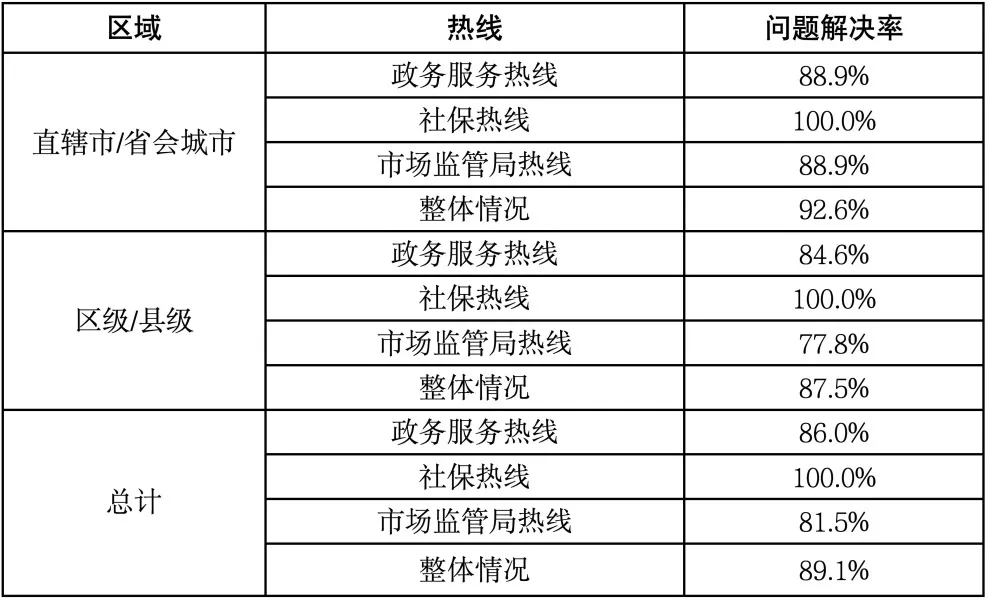 表3 不同城市級別咨詢熱線問題解決情況