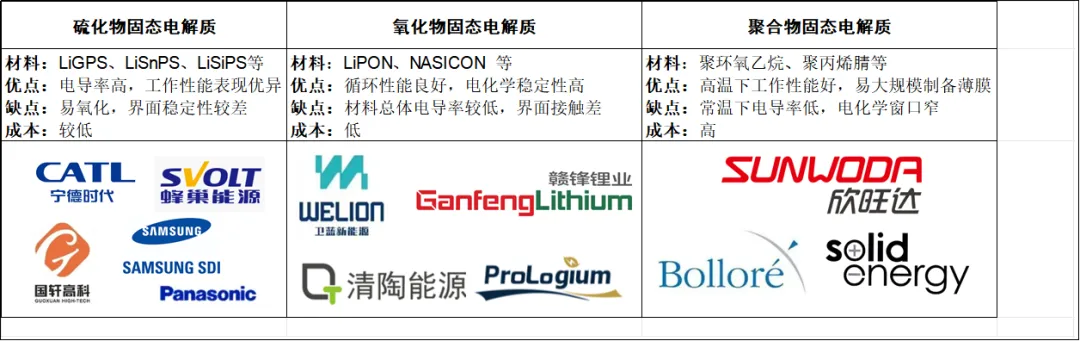 圖1 固態電池技術路線及代表企業示意圖