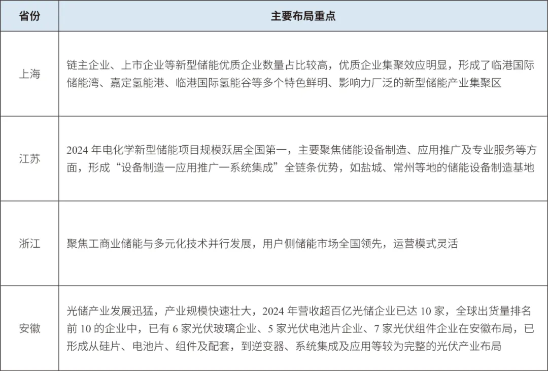 表1 長三角地區(qū)新型儲能產(chǎn)業(yè)重點(diǎn)布局情況