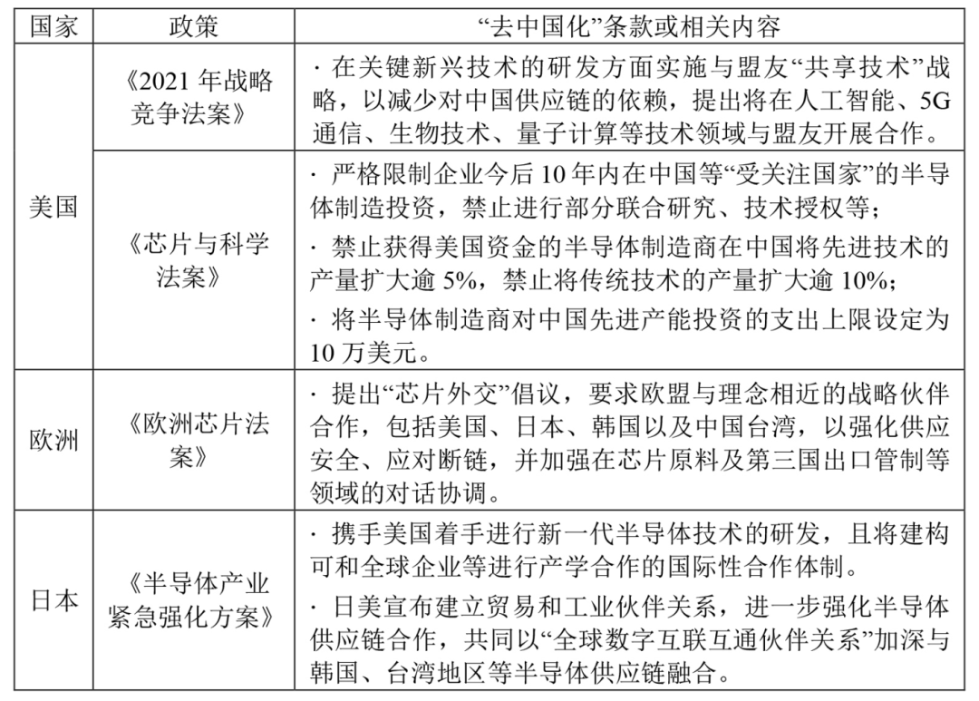 表1:美歐日等國(guó)家和地區(qū)的半導(dǎo)體法案中“去中國(guó)化”條款