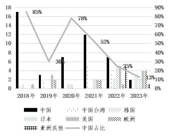圖1 2018年-2023年全球新增晶圓廠所在國(guó)家及地區(qū)分布