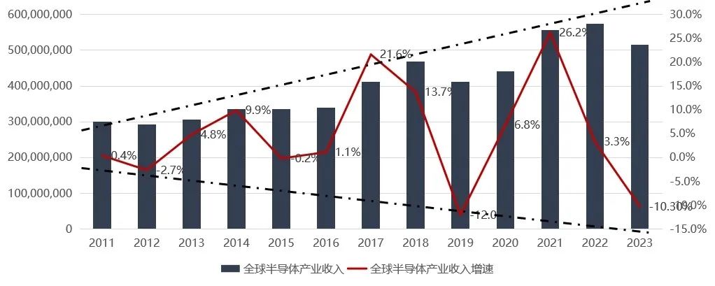 圖2 近10年來全球半導(dǎo)體產(chǎn)業(yè)銷售收入及增速變化