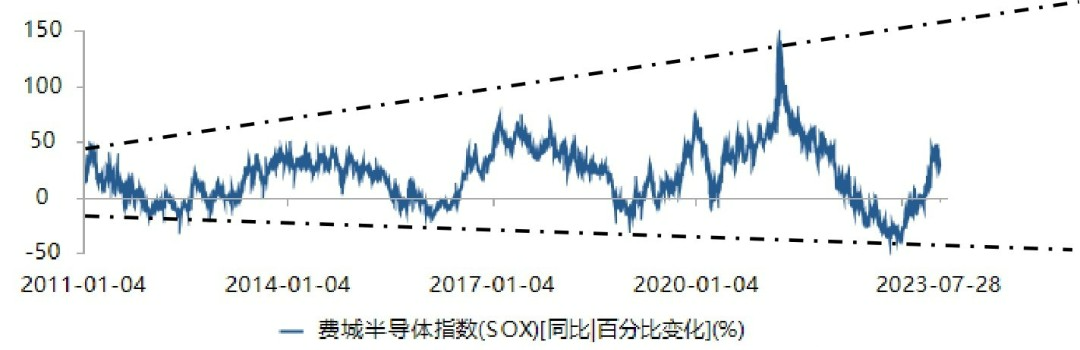 圖3 近10年來費(fèi)城半導(dǎo)體指數(shù)同比變化