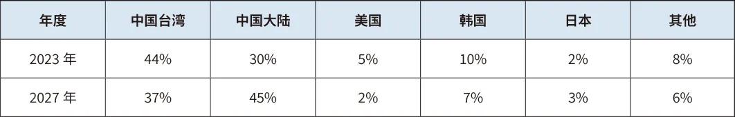 表5 2024年中美及中國臺灣各集成電路代工企業12寸代工產能占比