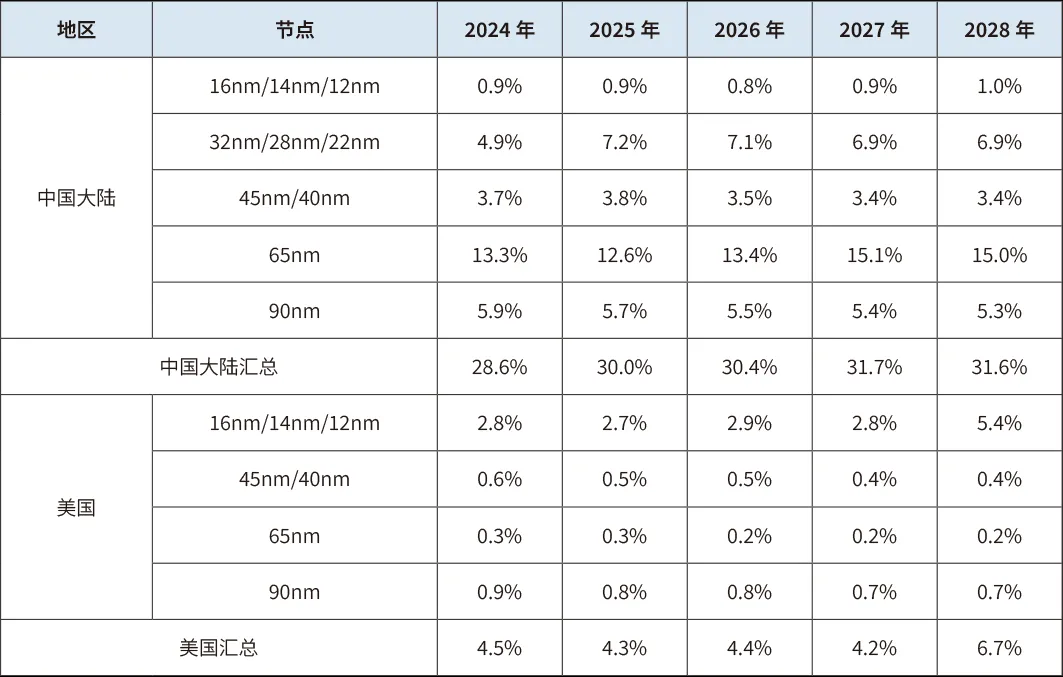表6 格芯與聯電不合并情況下中美90nm-12nm各節點產能占比