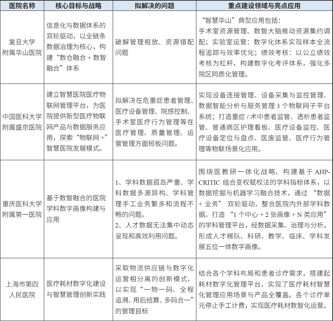 當前,部分醫院根據發展需要制定了數智化轉型的目標,圍繞醫療資源管理、醫教研一體化積極探索,取得了一定成效。