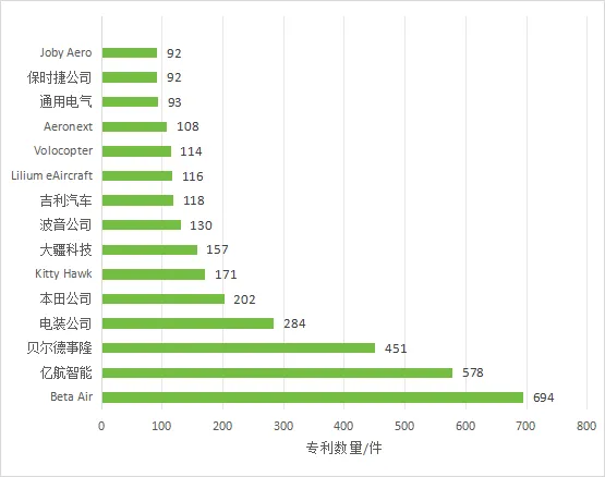 圖5 全球eVTOL領(lǐng)域?qū)@暾?qǐng)量前十五位的申請(qǐng)人(截止到2024年)