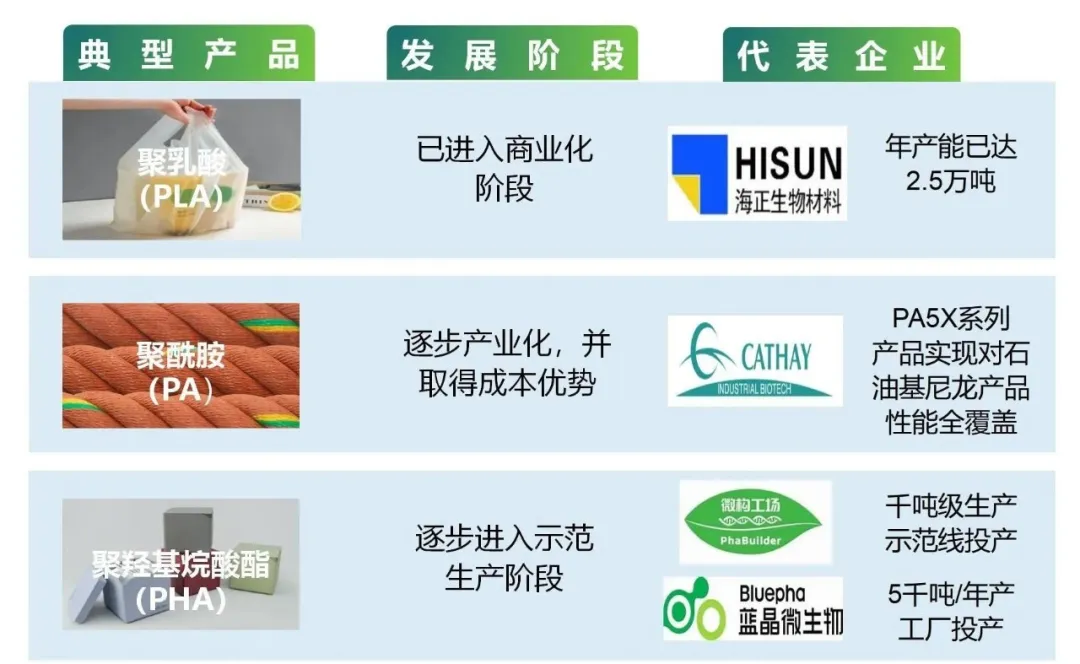 為根本上解決能源與環(huán)境困境,避免“與人爭糧”,實現(xiàn)可持續(xù)發(fā)展,非糧生物質(農作物秸稈、玉米芯、工業(yè)尾氣等)的高效利用成為研究熱點。當前其開發(fā)利用過程中存在著破解纖維素糖化困難、分離純化成本高等難題,通過高效催化酶培育、底盤細胞改造、工程菌選育、酶蛋白元件制備等合成生物技術,可加快提高非糧生物質原料的開發(fā)利用效能。目前,秸稈纖維素、合成氣等原料的開發(fā)相對成熟、步入商業(yè)化驗證,大部分新型碳源尚處實驗室或小試階段。如,BASF(德國)以蓖麻油為原料的生物基PA11已用于馬自達汽車關鍵零部件;凱賽生物(上海)秸稈制乳酸項目的發(fā)酵工藝已經得到驗證;合曜生物(南京)自主開發(fā)的特色“中國紅酵母”可顯著增強纖維素水解液利用能力,已應用于抗衰化妝品原料等。