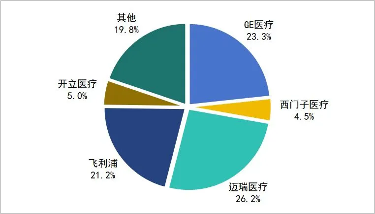 我國US市場規(guī)模約180億元,GE醫(yī)療(26%)、邁瑞醫(yī)療(24%)、飛利浦(24%)三家企業(yè)合計(jì)占據(jù)市場75%以上份額。隨著設(shè)備更新落地,國產(chǎn)品牌市場份額占比明顯提升,截至2024年三季度,US國產(chǎn)品牌占比提升至41%(邁瑞醫(yī)療26%、開立醫(yī)療5%,其他10%),GE醫(yī)療、飛利浦分別下降至23%、21%,預(yù)計(jì)2024年第四季度以及2025年上半年,隨著邁瑞醫(yī)療、開立醫(yī)療等企業(yè)參與更多設(shè)備更新采購,國產(chǎn)品牌市場份額將進(jìn)一步快速提升。